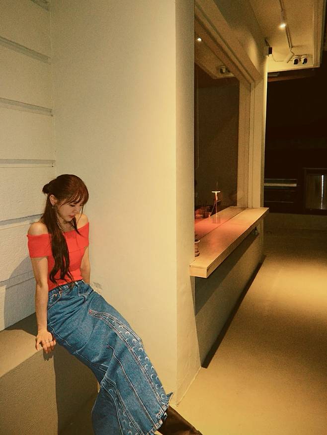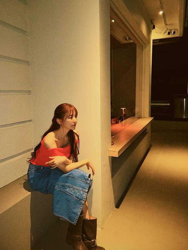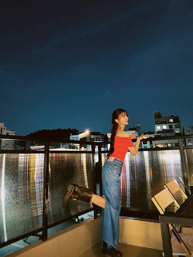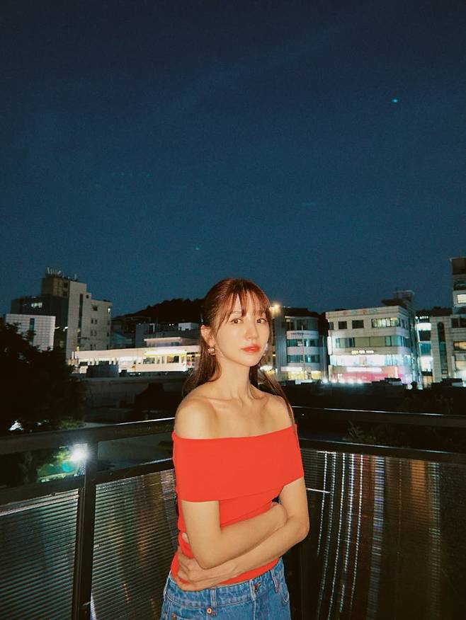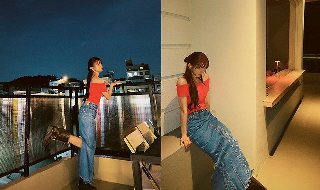 배우 윤은혜가 마치 청춘 영화의 한 장면 같은 일상으로 가을밤의 정취가 물씬 풍기는 루프탑, 강렬한 레드 오프숄더와 쿨한 데님을 매치 하였다.