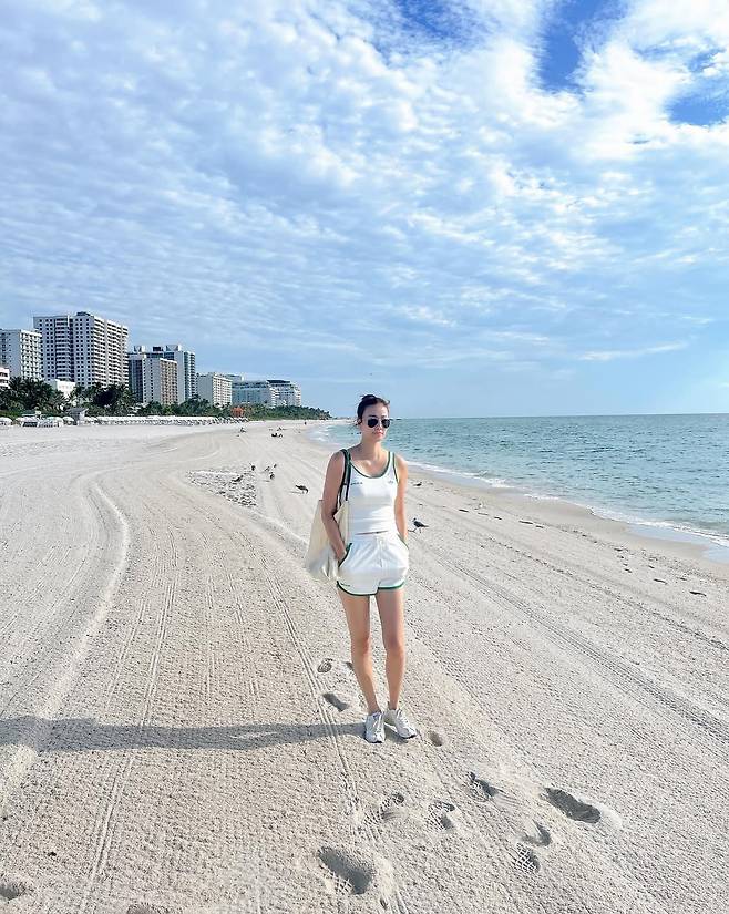 마이애미 휴가에서 특히 그녀가 방문한 곳은 세계적인 명소인 ‘베르사체 맨션’으로, 그녀는 우아한 화이트 맥시드레스로 완벽한 리조트룩을 선보였습니다.