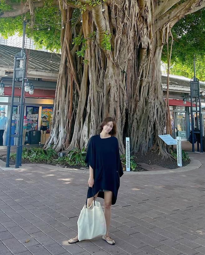 이 외에도 해변에서는 화이트 탱크톱과 쇼츠로, 시내에서는 오버핏 티셔츠 원피스로 TPO에 맞는 세련된 스타일을 자랑했습니다.