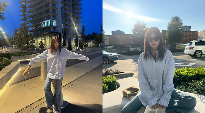 43세 맞아? 동안美 폭발한 이영은 청바지와 셔츠로 세련된 일상룩 완성