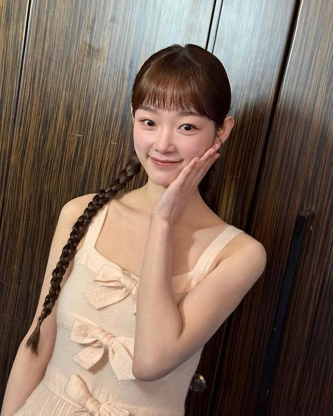머리를 길게 땋은 헤어스타일은 소녀다운 순수함과 청초한 매력을 배가시켰다.