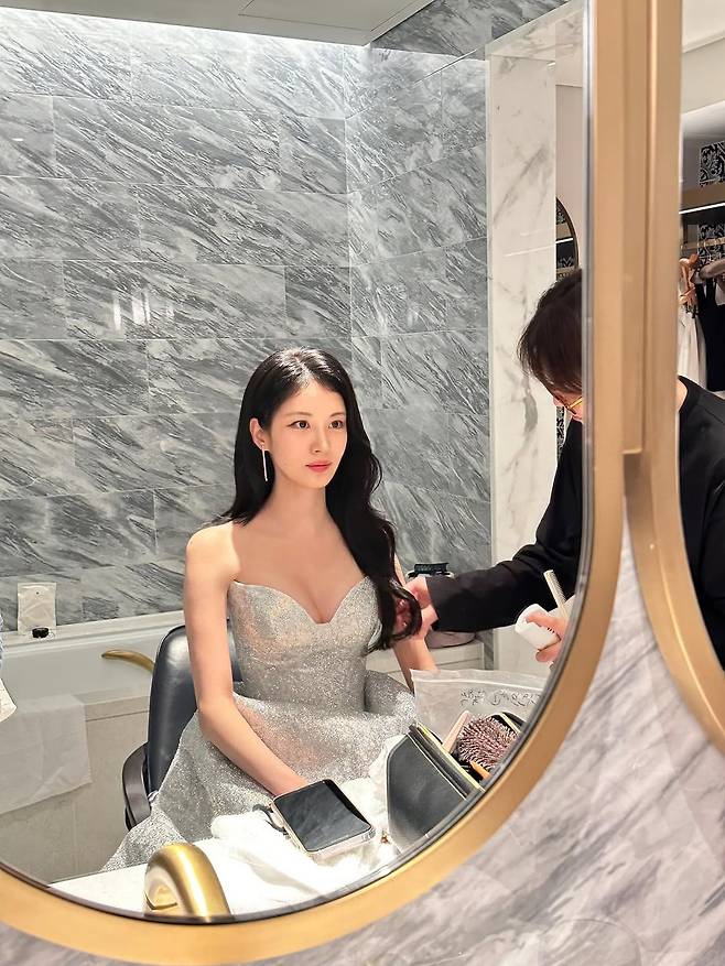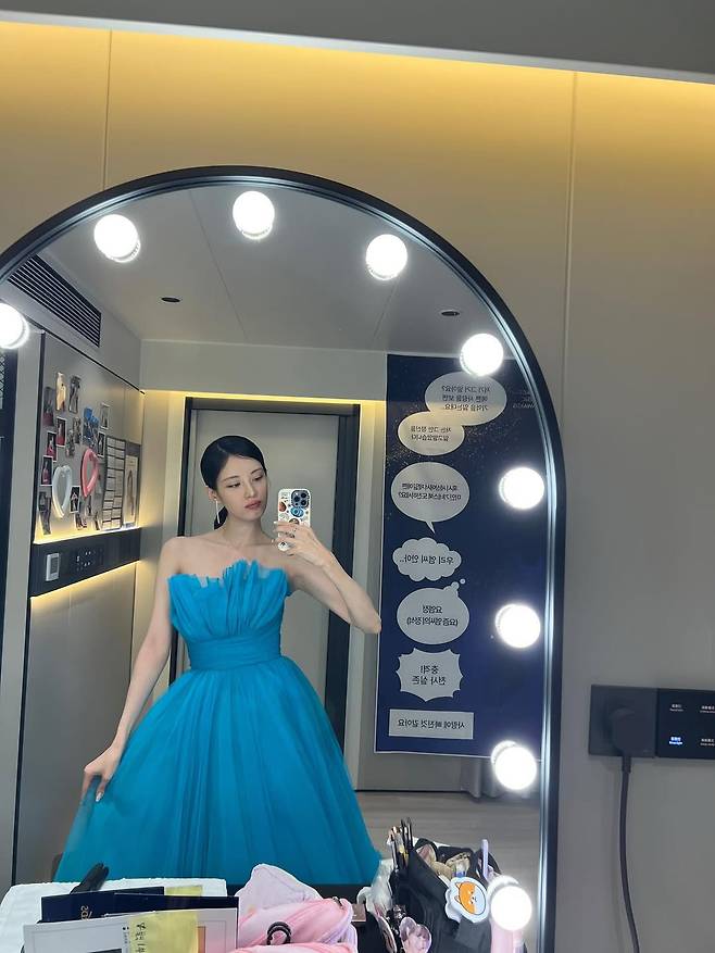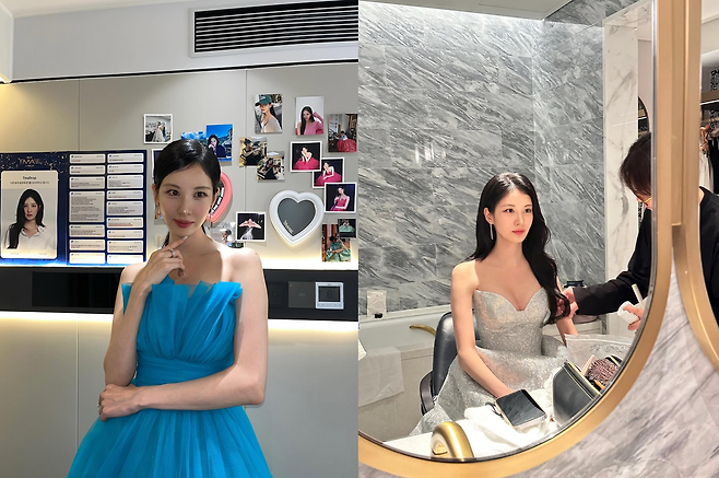 사진 속 그녀는 맑고 시원한 블루 컬러의 튤 드레스와 블링블링한 드레스를 번갈아 입고 독보적인 아우라를 뽐냈습니다.