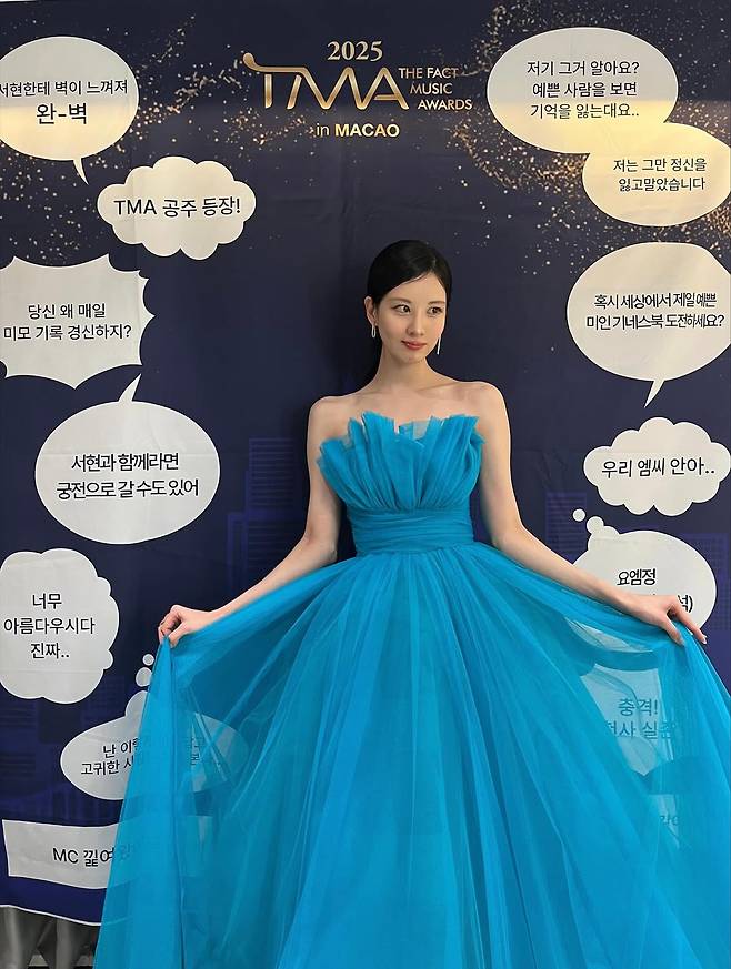 서현은 최근 자신의 소셜 미디어를 통해 마카오에서 열린 ‘TMA 시상식’ 참석 당시의 눈부신 비하인드 컷을 공개했습니다.
