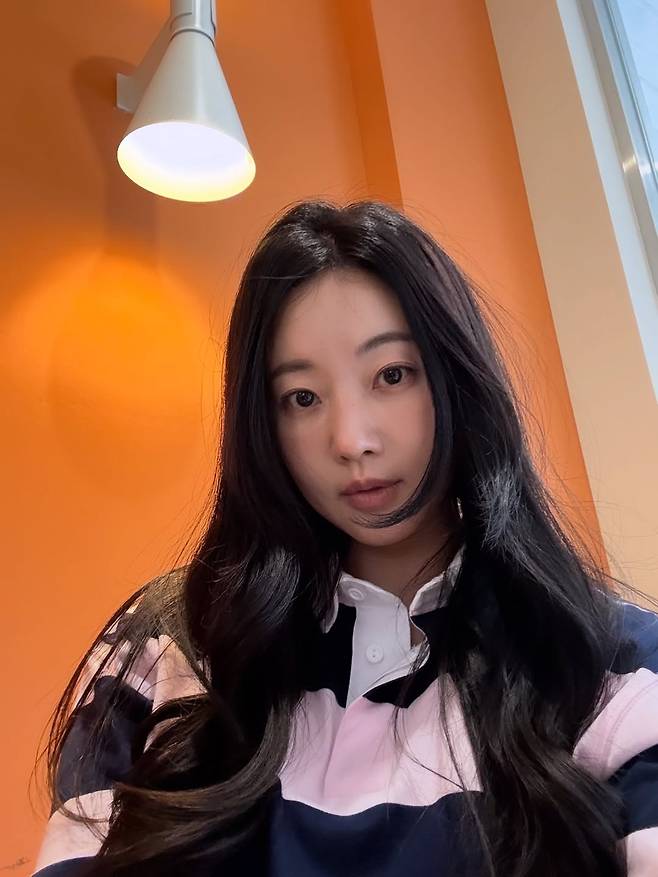 단정한 카라 티셔츠가 학생 같은 풋풋함을 더해줍니다. 긴 생머리와 투명한 메이크업은 청순미를 극대화했죠.
