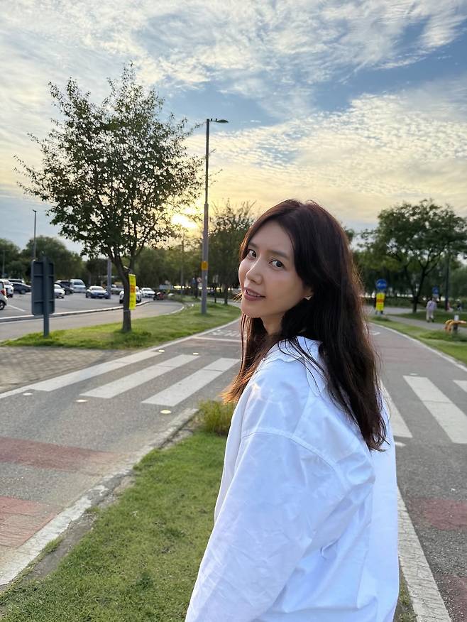 해 질 녘 선선한 바람이 부는 한강 공원의 저녁. 배우 채정안이 특유의 시크하면서도 편안한 매력으로 가을의 문턱을 넘는 모습을 공유했습니다.