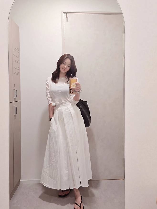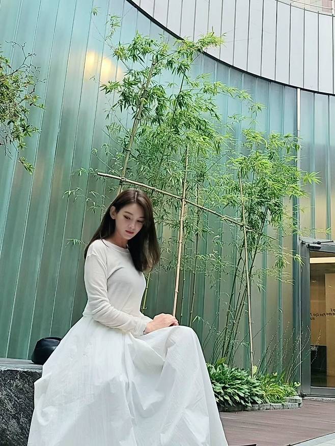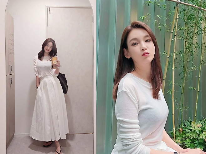 최근 그녀가 공개한 사진 속 모습은 그야말로 ‘청순함’ 그 자체다. 얇고 부드러운 흰색 상의에 풍성한 볼륨의 화이트 롱 스커트를 매치한 모습은 마치 10월의 신부를 연상시킨다.
