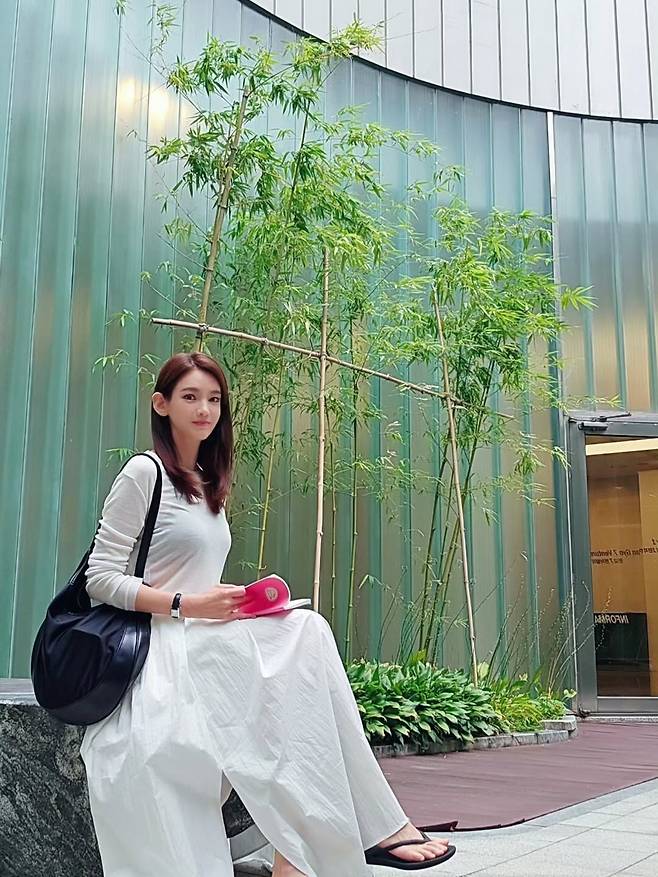 여기에 블랙 숄더백과 플립플랍으로 포인트를 주어 과하지 않은 ‘꾸안꾸’ 스타일을 완성했다. 그녀는 “화이트를 입으면 기분이 환해지는 느낌”이라며,