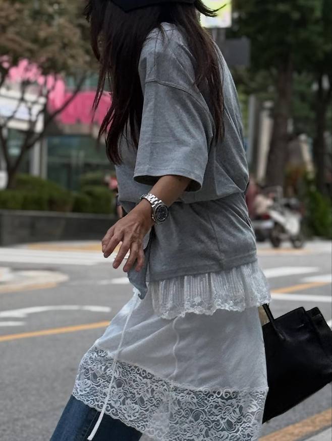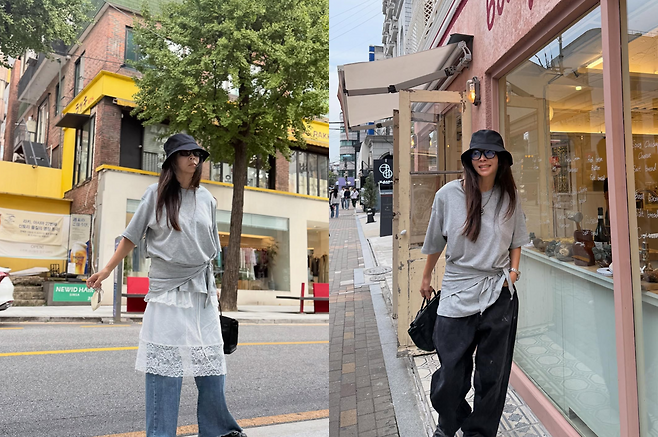 최근 그녀가 선보인 패션은 그야말로 ‘힙’ 그 자체다. 루즈핏 회색 티셔츠에 헐렁한 블랙 팬츠를 매치한 모습은 편안하면서도 시크한 도시 감성을 자아낸다.