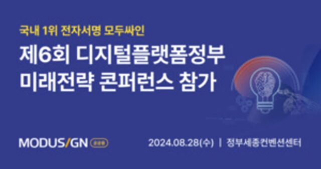 모두싸인, 제6회 디지털플랫폼정부 미래전략 콘퍼런스 참가… 공공기관 전용 전자서명 선보여 국내 전자계약 전문기업 모두싸인(대표 이영준)이 오는 28일 정부세종컨벤션센터에서 개최되는 ‘제6회 디지털플랫폼정부 미래전략 콘퍼런스’에 참가한다고 22일 밝혔다. 한국PMO협회가 주최하고 전자신문이 주관하는 이번 행사는 디지털플랫폼정부의 추진 현황과 향후 전망, 정부 및 공공분야에서의 성공적인 디지털 전환 사례를 공유하는 자리다. 중앙정부, 공공기관, 지 2024.08.22