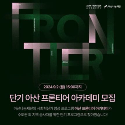 아산나눔재단, 아산 프론티어 아카데미 첫 단기 프로그램 수강생 모집 아산나눔재단(이사장 엄윤미)이 기업가정신을 갖춘 소셜섹터 리더를 양성하는 ‘아산 프론티어 아카데미(Asan Frontier Academy)’의 단기 교육 프로그램을 처음 선보이며 내달 2일까지 수강생을 모집한다.‘아산 프론티어 아카데미’는 소셜섹터의 중간 관리자가 기업가정신과 리더십, 경영 능력을 두루 갖춘 차세대 사회혁신 리더로 성장하도록 지원하는 전문 2024.08.12