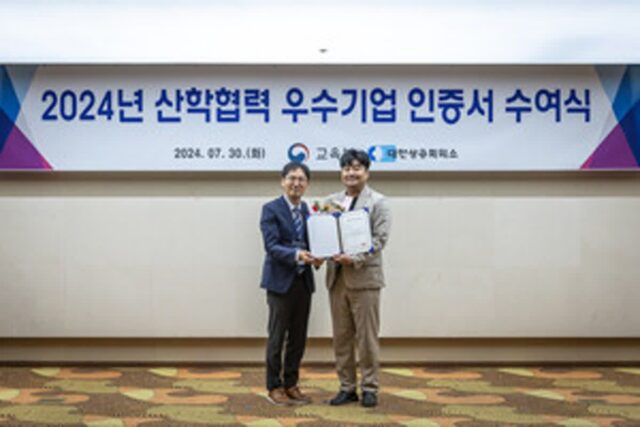 ㈜엘투플랜, 교육부 “2024년 산학협력 우수기업” 인증 ㈜엘투플랜은 지난 30일 교육부가 주관하는 ‘2024년 산학협력 우수기업 인증서 수여식’에서 산학협력 우수기관으로 선정돼 인증서를 수여받았다고 밝혔다.「산학협력 우수기업 인증」 은 2023년부터 교육부가 주관하고 있는 제도로, 대학생 현장 실습, 산학협력 교육과정 운영 등을 통해 실적 점수인 마일리지를 적립한 기업 중 우수기업을 선정해 산학협력을 확산하는 2024.08.12