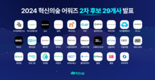 2024 혁신의숲 어워즈 2차 후보 29개 기업 선정… 연말 코엑스 시상식 무대에 서게 될 스타트업은? 혁신의숲 운영사인 마크앤컴퍼니(대표: 홍경표)가 2024년 혁신의숲 어워즈 2차 후보 스타트업 29개를 발표했다. 앞서 지난 4월에 발표한 1차 후보 기업 30개에 더해, 이번 2차 후보 기업까지 ‘2024 혁신의숲 어워즈’ 후보 기업은 총 59개가 되었다. 오는 10월에 3차 후보 발표 후, 1차부터 3차까지의 후보 기업들 가운데 최종 수상 기업이 선정된 2024.07.17
