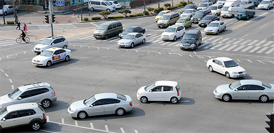 교차로 정체 상황에서 가장 흔히 볼 수 있는 위반은 꼬리물기다. 신호가 끝나기 직전 억지로 진입한 차량이 교차로 한복판에 서게 되면서 다른 방향의 교통을 마비시킨다. 승용차 기준 과태료는 6만 원, 승합차는 7만 원에 벌점 10점이 추가된다. 특히 구급차와 소방차의 골든타임을 빼앗아 국민 생명까지 위협한다는 점에서 강력 단속 1순위로 꼽힌다.