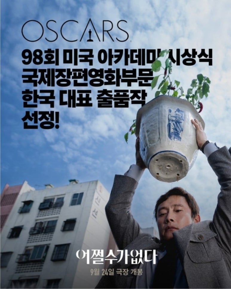영화진흥위원회는 〈어쩔 수가 없다〉를 제98회 아카데미 국제장편영화상 한국 대표작으로 공식 선정했다. 심사위는 작품의 보편적 주제 의식, 세계가 공감할 비극을 유머로 빚은 아이러니, 배우들의 호연, 북미 배급사의 역량을 높이 평가했다.