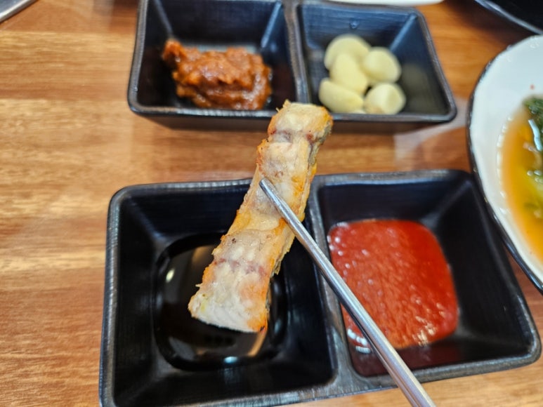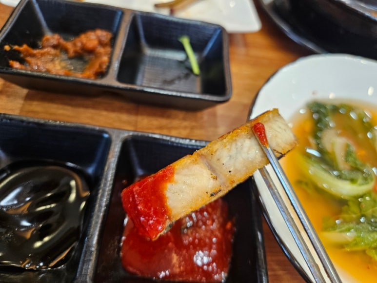 달콤한 간장소스와 매콤한 매콤 소스에 한 번씩 찍어 먹었고 쌈으로도 싸먹었다.간장 베이스 소스는 장어의 고소한 풍미가 더 깔끔하게 살아나고 고추장 베이스 매콤 소스는 장어의 느끼함을 잡아준다. 장어를 더 고급스럽게 맛있게 즐기는 방법이다.
