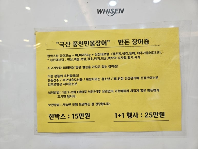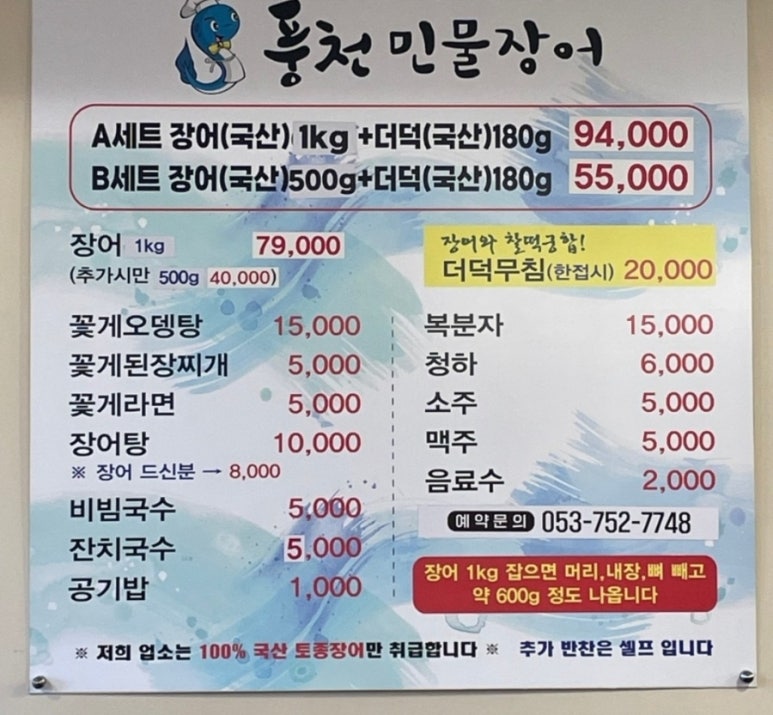 장어는 100% 국산 토종 풍천민물장어만 사용한다고 안내되어 있어 신뢰감을 준다.