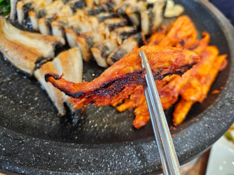 A 세트로 먹으면 더덕구이 한 접시가 같이 나오는데 더덕구이가 양념이 맛있기도 하고 구우면 더 맛있는 안 먹으면 후회하는 별미다. 장어만 먹어도 충분히 맛있긴 하지만 더덕도 같이 곁들이니 더 풍성한 느낌이다. 장어는 스태미너 보양식이고 더덕은 건강식으로 보양 효과도 더 커지는 것 같다.