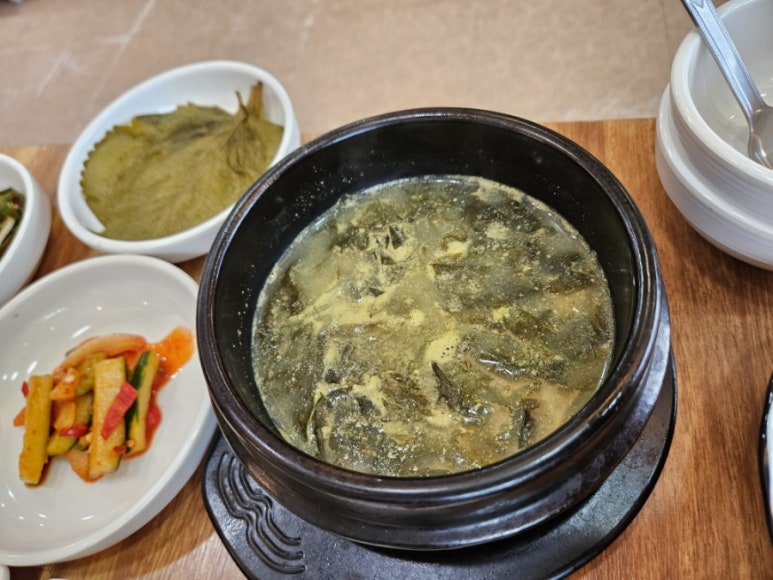 황태 미역국도 나오는데 들깨가루 들어간 진국에 미역도 푹 끓여서 부드럽다. 황태의 구수함과 미역의 풍미가 어우러져 깊고 담백한 국물 맛을 낸다. 장어구이와 황태 미역국도 잘 어울린다. 해장용으로 좋을 것 같은 황태 미역국이다.