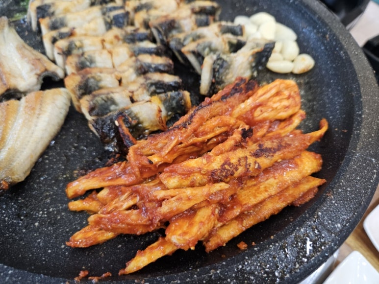 양념된 더덕을 구우니깐 얼마나 맛있던지.. 구우니깐 쓴맛이 사라지고 단맛이 난다. 적당히 구우니깐 단맛과 향긋함이 퍼져서 장어구이와 최고의 궁합이다. 이 조합 찬성이다.??