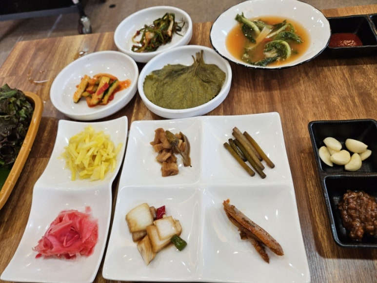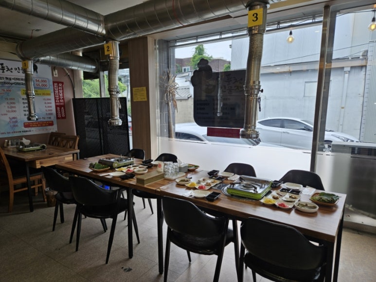 내부는 쾌적하고 편안한 분위기다. 안쪽에 손님이 벌써 계셨고 단체 손님도 예약하셨는지 준비된 모습이다. 우리도 예약하고 방문했는데 상이 차려져있다.