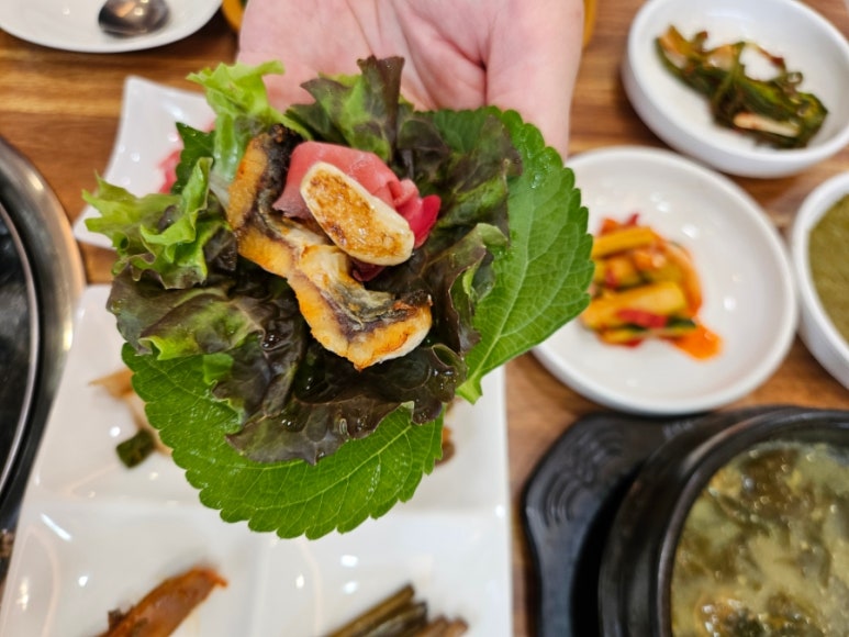 상추와 깻잎에 쌈으로도 싸먹고 마늘구이 초생강과 같이 곁들여도 좋았고 깻잎지에 장어구이 올려서 먹어도 깔끔하게 먹을 수 있다.
