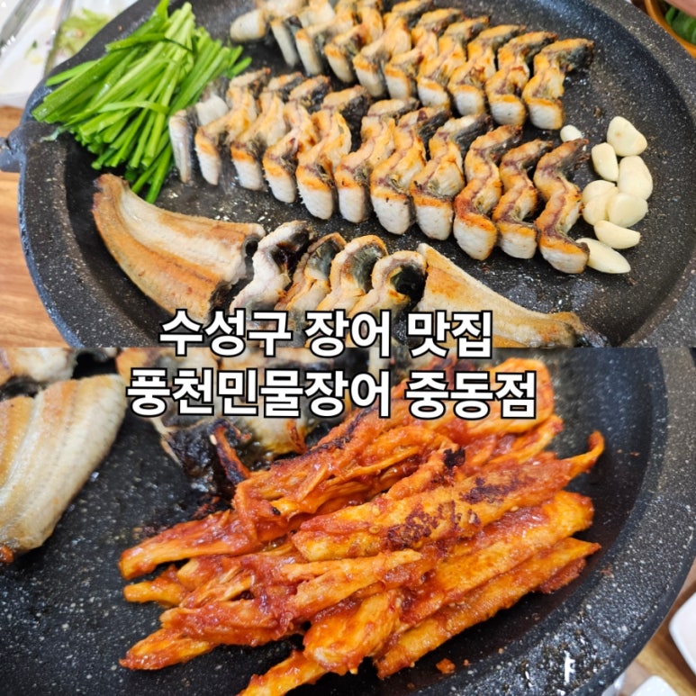 풍천민물장어 중동점은 가게 앞에 주차장이 있고 노란 간판이 눈에 확 띄어서 금방 찾을 수 있었다. 이곳은 수상시장역에서 가깝기도 하고 단골 많은 가게였다. 또 장어를 직접 구워주고 친절해서 편안하게 즐길 수 있어서 만족스러운 대구 장어 맛집이다.