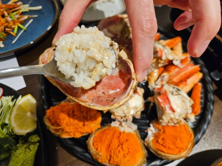 빵게는 살과 내장을 맛있게 먹을 수 있고, 게딱지에는 밥 비벼서 먹으니 고소하다. 빵게세트는 이처럼 회도 먹고 빵게도 먹으니 더 즐거운 식사였다.