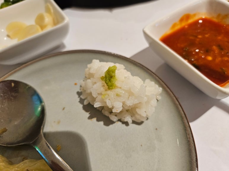 같이 나온 초대리밥에 와사비 올리고 횟감 올려서 초밥으로 만들어 먹으니 요게 또 별미다. 초밥을 좋아하기도 하고 신선한 횟감을 바로 초밥위에 만들어 올려 먹으니 또 재미있기도 하다.