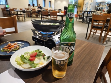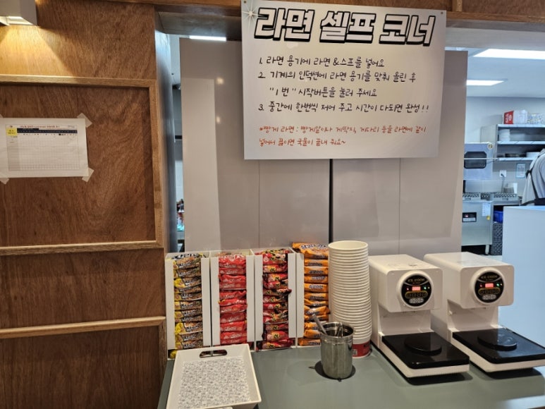 라면 셀프 코너도 있어서 회를 먹고 후식으로 라면 끓여먹기도 좋아 보였다. 라면은 언제 먹어도 맛있기 때문에 이런 라면 셀프 코너 대환영이다. 안내문에 보면 빵게알이나 게딱지 넣어서 끓이면 국물이 끝내준다고 적혀있다.