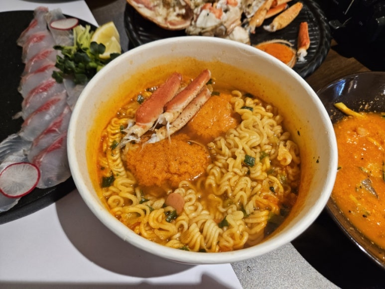 마지막엔 라면 셀프 코너에서 라면도 끓여먹었는데 시키는 대로 빵게를 넣어서 끓였고 빵게알이 익으니 식감이 독특했다. 씹을 때마다 톡톡 터지는 게 알밥 먹을 때와 또 다른 느낌으로 맛있게 먹고 온 대구 회 맛집 어선당이다.