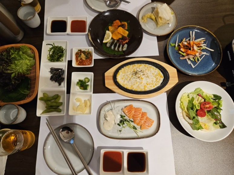 스끼다시가 잘 나오니깐 맥주도 한잔했는데 스끼다시만으로 술안주가 다양해서 먹는 즐거움이 있다.
