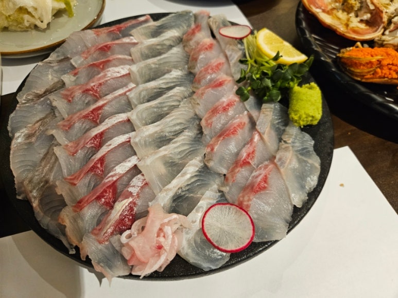 와사비 간장에도 찍어 먹고 초장에도 찍어 먹고 여러가지 방법으로 즐긴 신선한 회다.