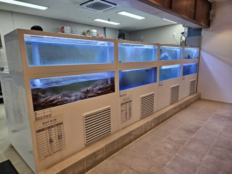 한쪽에 빵게와 수족관도 있는데 수족관이 엄청 깨끗해서 믿음이 갔다.