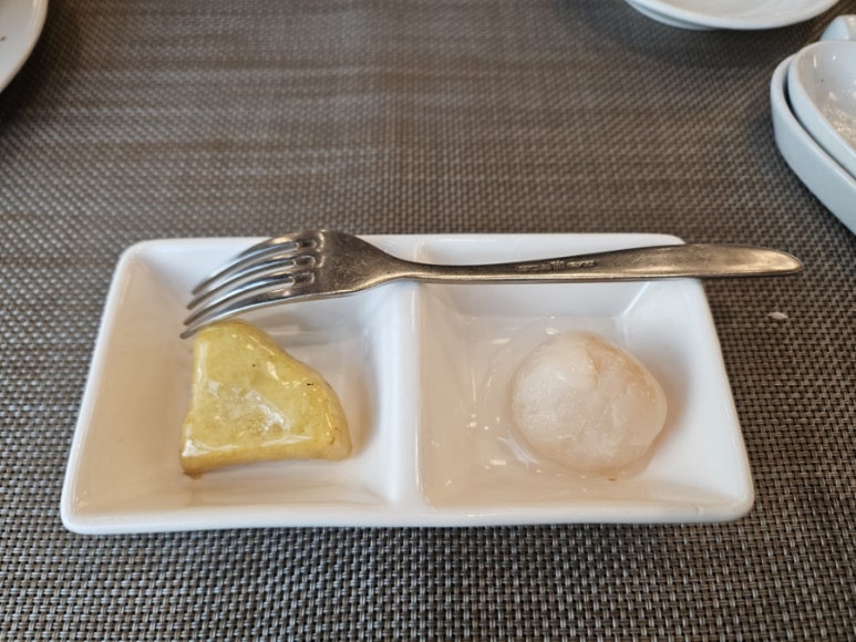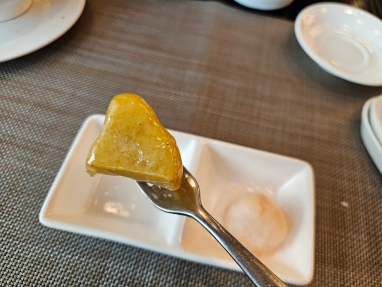 리치는 청량하고 향긋한 맛이 좋은 과일 디저트로 은은한 꽃향기 같은 향미가 있어 코스의 마무리로 좋았다. 상큼함으로 입안을 깔끔하게 정화해 주는 듯한 리치까지 맛있게 먹고 온 대구 중식 맛집 인터불고 엑스코 동보성이다.