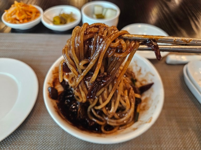 식사는 짜장면 짬뽕 볶음밥 중 선택할 수 있었다. 우리는 짜장면 좋아해서 짜장면을 선택. 소스가 진하고 깊은 맛이 나는 짜장면으로 마지막까지 만족스러운 식사였다. 산뜻한 오이와 함께 먹으니 느끼함도 잡아주고 무난하게 마무리하기 좋은 식사 코스였다.