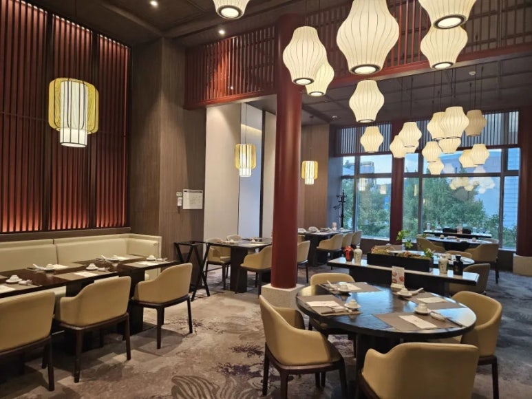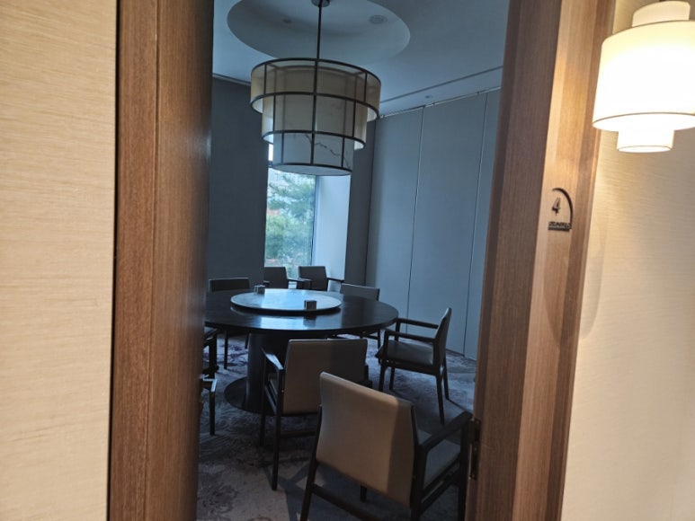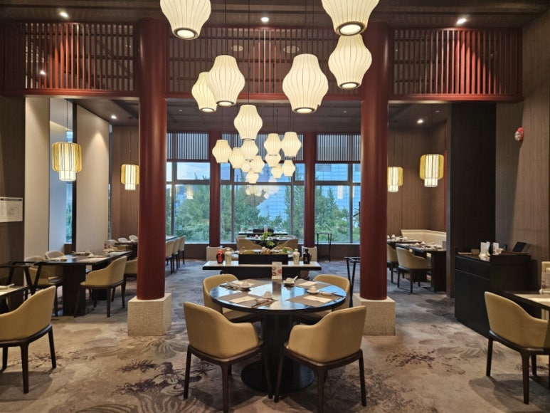 고급중식당답게 식당 분위기가 중후하면서도 고풍스럽다. 천장에는 연등을 연상시키는 조명이 포인트가 되고 은은한 조명이 따뜻하고 품격 있는 느낌을 준다.