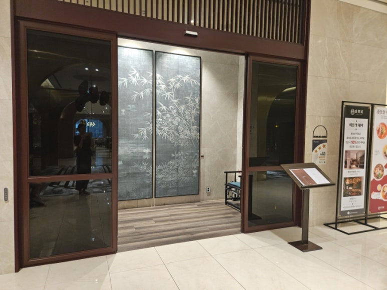 입구부터 중국풍 병풍 장식이 걸려있어 중식당 분위기를 풍겼고 밖에서 기다릴 수 있는 고풍스러운 의자가 있어서 앉아 있기 좋고 사진 찍어도 예쁘게 나왔다.