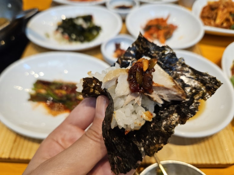 곱창김에 싸서 씨앗쌈장 넣어서 싸서 먹어도 맛있고 누룩소금에 찍어 먹어도 맛있다. 소금에 찍어 먹으면 담백한 고등어 풍미에 깊은 감칠맛이 더해져 군더더기 없는 깔끔한 맛을 느낄 수 있다.