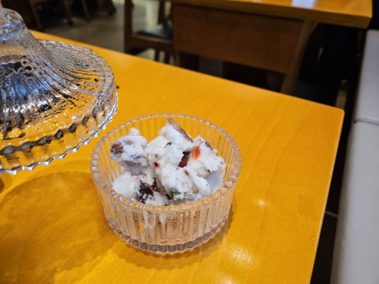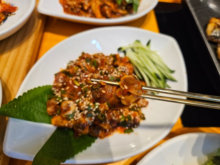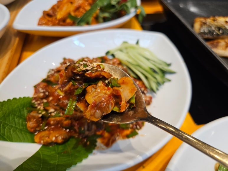 추가로 주문한 꼬막무침은 매콤달콤한 양념에 버무려 밥반찬으로 맛있었던 메뉴로 화덕고등어구이 2인 주문하고 꼬막무침 또는 제육볶음 추가하면 8,000원에 먹을 수 있어서 좋았다. 밥에 비벼서 먹어도 맛있고 그냥 먹어도 별미다.