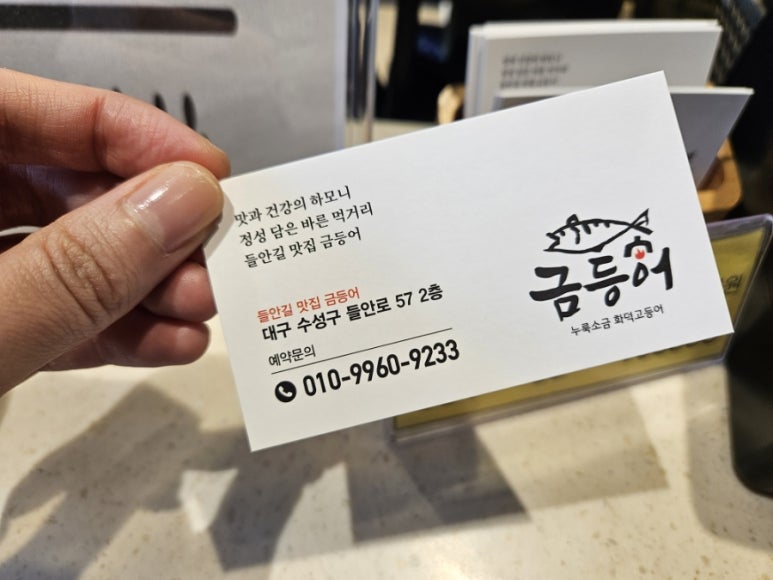 실내도 깨끗하고 직원도 친절해서 다음에 또 방문하고 싶은 대구 들안길 맛집 금등어 본점으로 명함도 하나 챙겼다.다시가고 싶은 맛집으로 등록완료다.