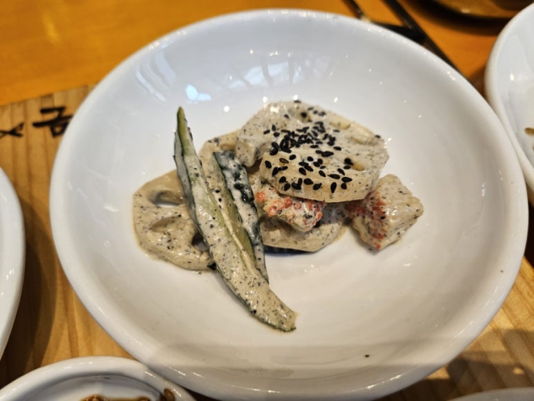 연근들깨무침은 아삭한 연근을 데쳐내고 고소한 들깨소스에 버무렸는데 건강반찬이기도 하고 입맛저격이었다. 반찬 하나 하나 먹을수록 감동이었다.