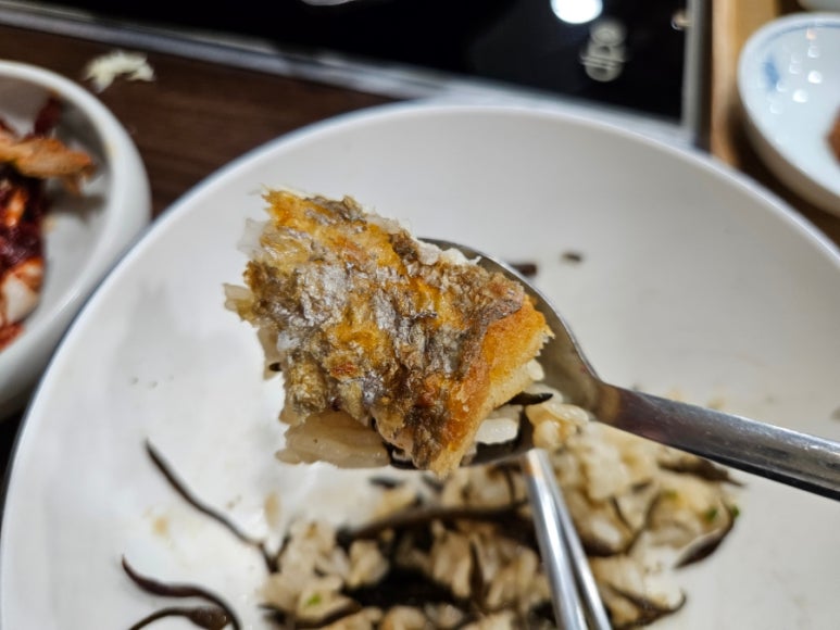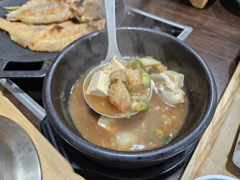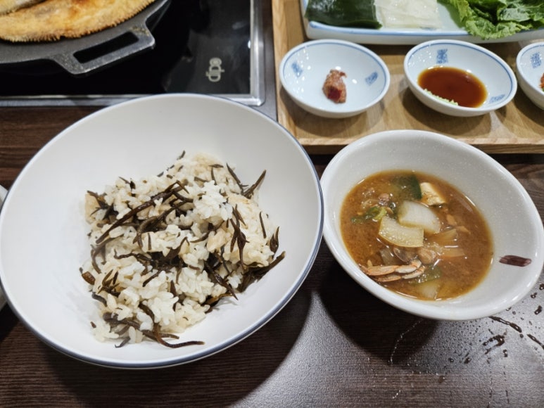모듬 생선구이가 나왔다. 엄청 바삭하게 구워진 생선구이였고 고등어와 갈치는 기본이고 가자미구이가 커다랗게 나오는데 좋아하는 생선이라 맛있게 먹었다.