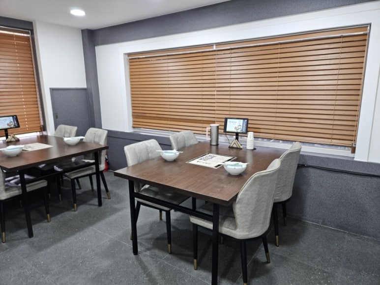 실내 분위기는 전체적으로 밝은 톤으로 그레이 의자와 우드톤의 테이블이 조화롭고 차분하고 단정한 분위기의 다사 맛집이었다. 편안한 분위기로 손님이 많아 사진을 찍을 수 없었지만 내부는 넓은 편이다.