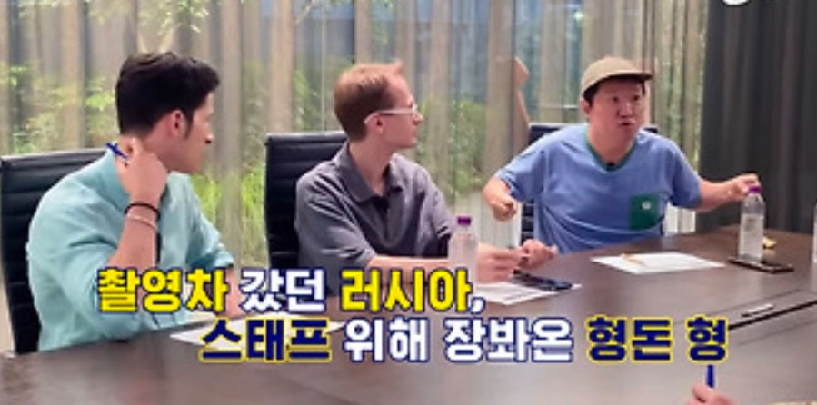 항돈이가 촬영차 러시아에 갔을때 마트에서 스탭들과 장을 보고