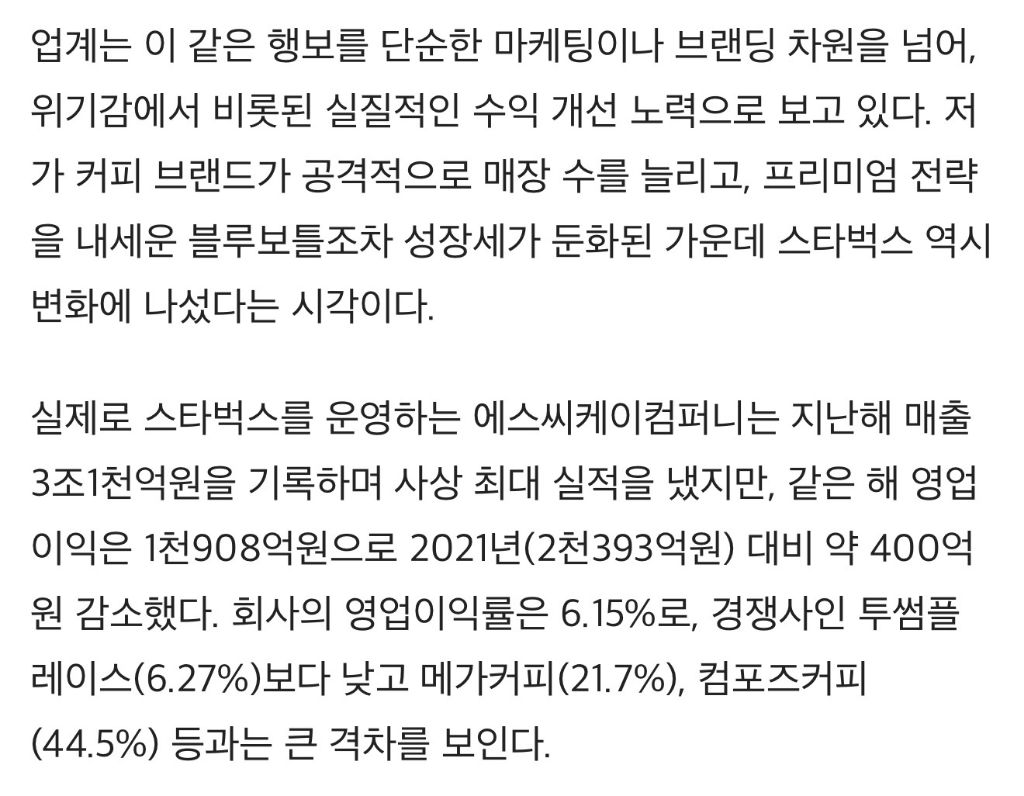 기어이 스벅도 말아먹을듯한 정용진 잼이슈 잼이슈 2025년 09월 26일 오후 10:00 조회수 1 공유 글씨 축소 A 글씨 크기 초기화 글씨 확대 아직은 업계 1위지만 영업이익률 떨어짐 그간 정용진이 말아먹은 브랜드 그나마 있는 캐시카우 이마트도쿠팡에 치이고 지마켓 때문에 골머리썩는중 [동백꽃 필 무렵] 언제봐도 눈물나는 필구의 여덟살 인생 장원영의 대항마라는 한 소속사 연습생 한국 여행온 일본 여자들의 루틴 연휴 동안 무슨 책 읽을 거야? 최근 원피스 제끼고 1위라는 일본 만화ㄷㄷㄷㄷㄷ