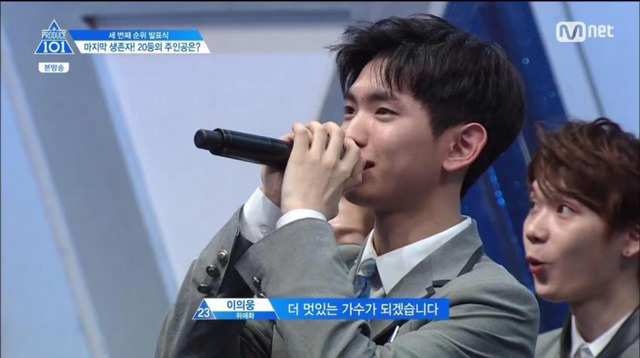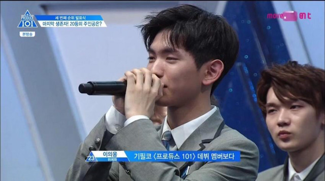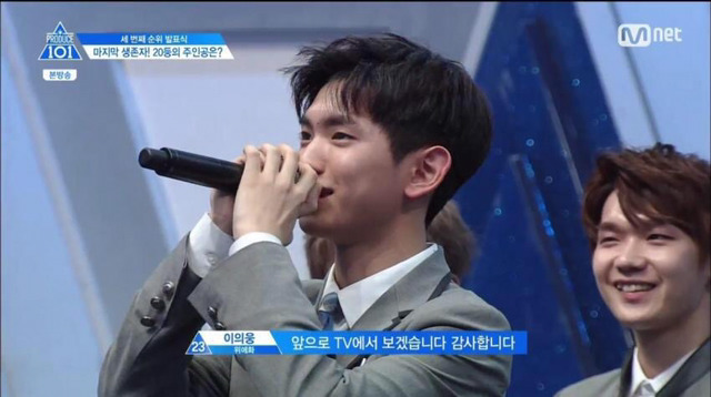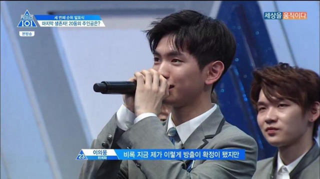 프로듀스 101 시즌2에서 탈락했던 이의웅 탈락소감