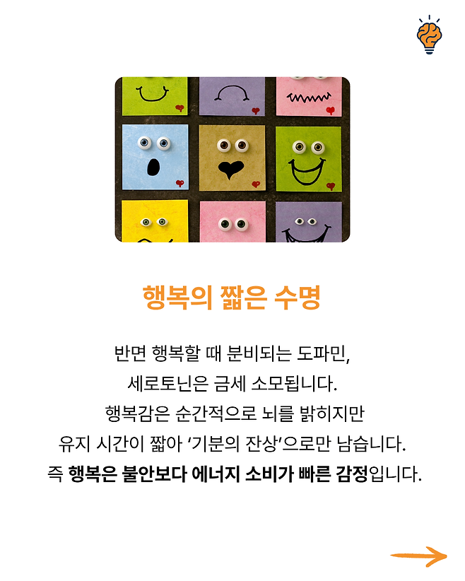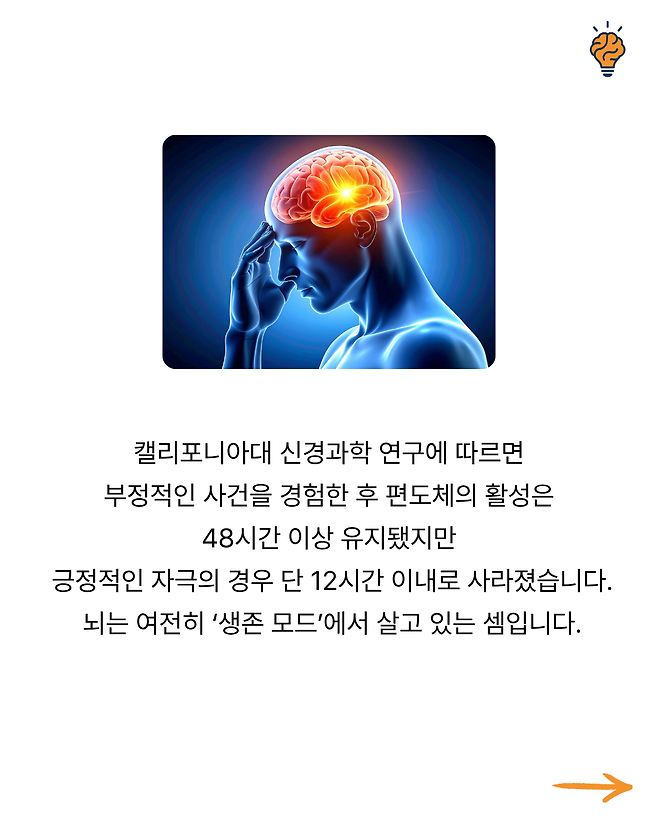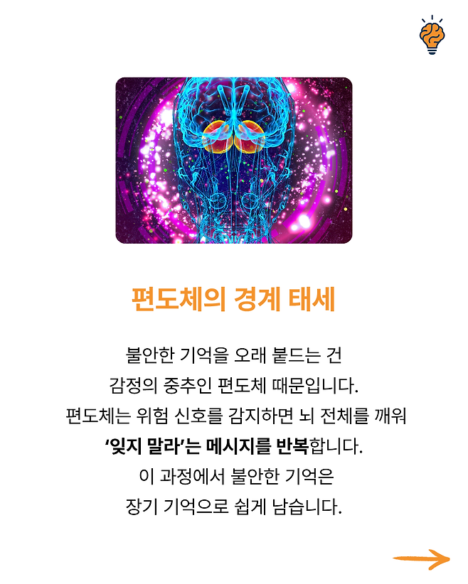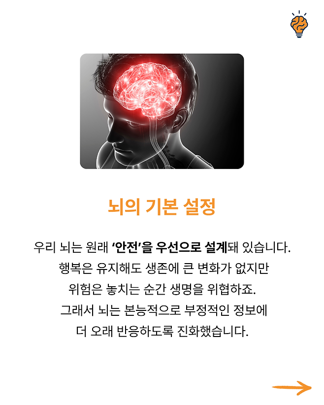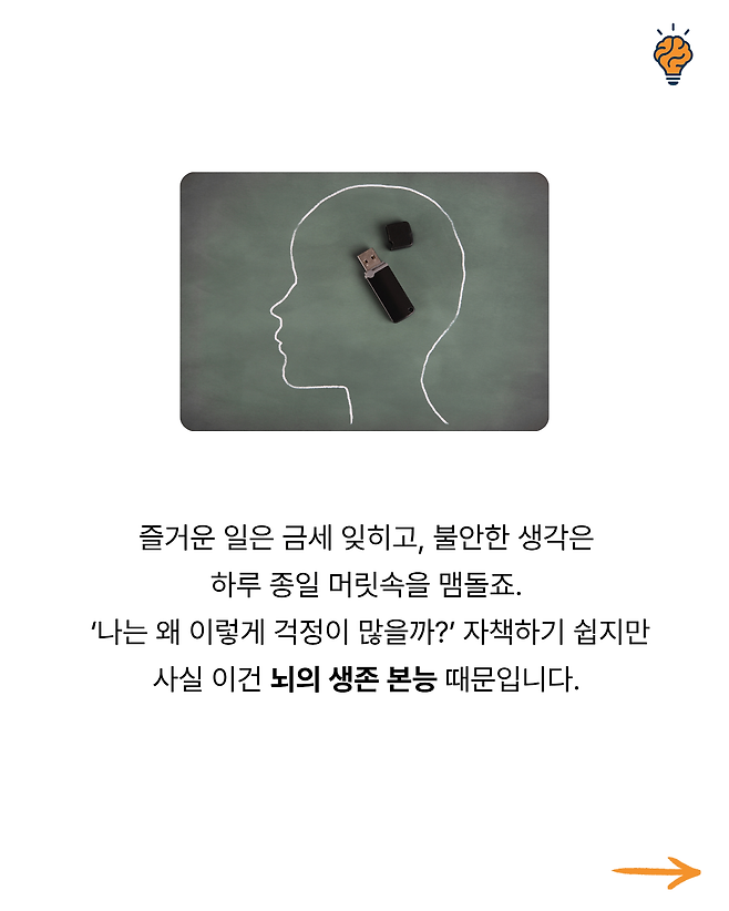 “왜 행복한 순간은 짧고, 불안한 생각은 오래 남을까?” 뇌생각 뇌생각 2025년 10월 14일 오전 09:00 조회수 55 공유 글씨 축소 A 글씨 크기 초기화 글씨 확대 “왜 피곤하면 ‘멍’하니 ‘하늘만’ 바라보게 될까?” “왜 스트레스 받을 때 단 음식이 당길까?” “왜 생각이 많을수록 잠이 잘 안 올까?” “왜 익숙한 길은 잘 기억하면서 사람 이름은 자꾸 까먹을까?” “잠들기 전 번뜩이는 아이디어, 왜 아침에 기억나지 않을까?”