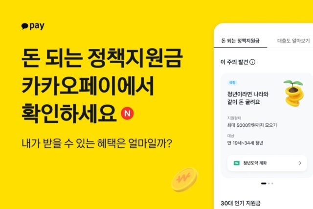 카카오페이 ‘돈 되는’ 정부 정책지원금 추천 서비스 개시 [한국금융신문 김경찬 기자] 카카오페이(대표 신원근)가 정부에서 제공하는 정책지원금을 쉽게 확인하고 본인에게 적합한 정책지원금을 추천받을 수 있는 ‘돈 되는 정책지원금’ 서비스를 시작한다. 카카오페이는 ‘돈 되는 정책지원금’ 서비스를 통해 정부의 정책지원금 정보를 바탕 2023.04.05