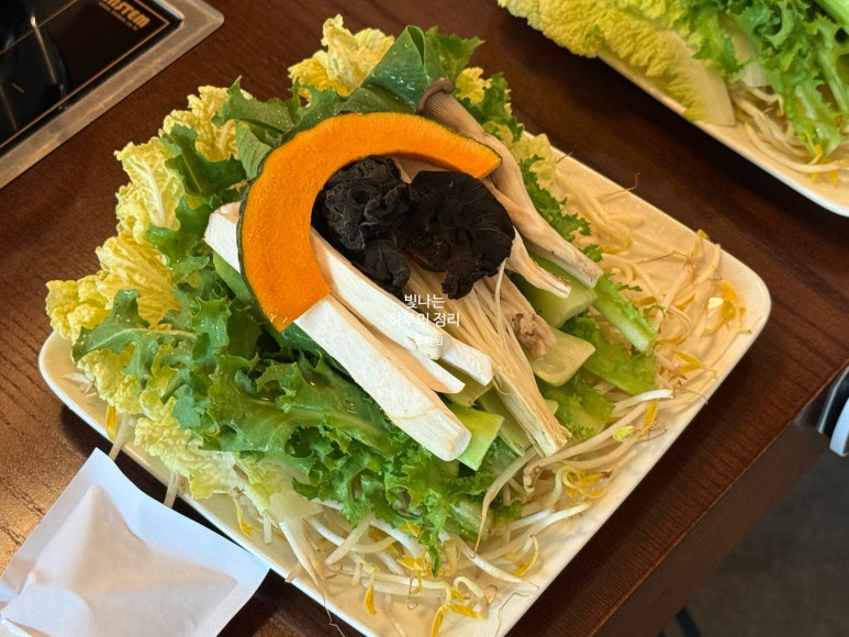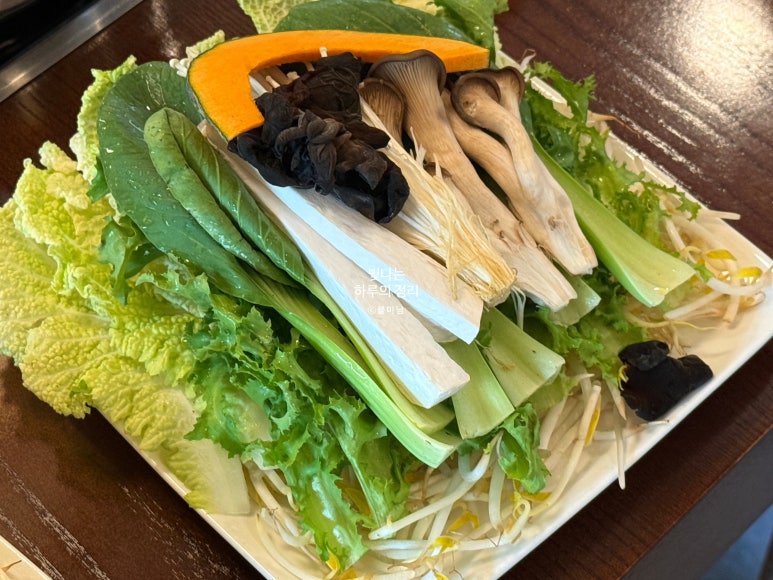신선한 배추, 청경채, 단호박, 버섯, 숙주 등이