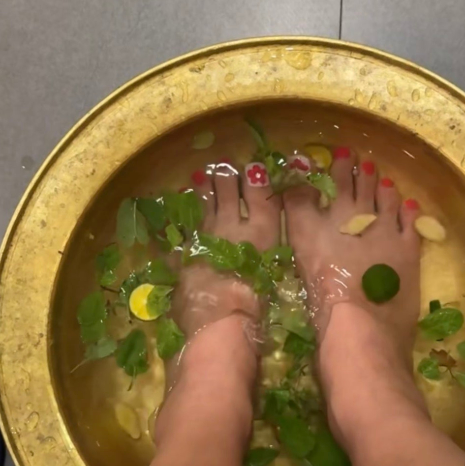 마사지 전에는 따뜻한 족욕으로 시작하는데
